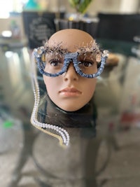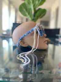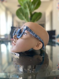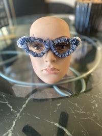 Oversized Denim Shaggy Pearl Frames