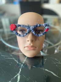 Denim Red Rose Cateye Frames