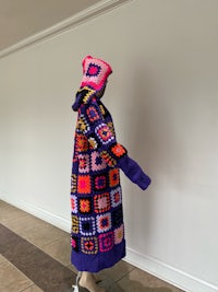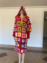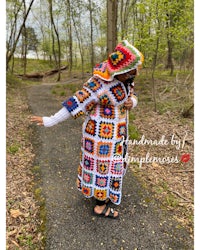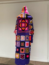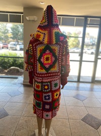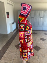This isn’t your Grandma’s Granny Squares! Each square is hand crafted with 100% soft acrylic yarn and hand stitched together. With the stylish oversized hood and ribbed sleeves. All eyes will be on you!!!