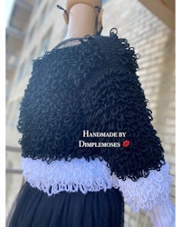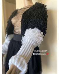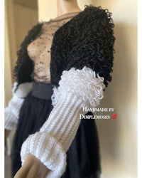 This Loopy Jacket comes with an open front and ribbed sleeves. Order yours in one solid color of your choosing or 2 toned like pictured here.