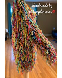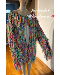 Pictured here is the Fruity Pebbles Long Shaggy Adult Jacket. This Jacket can be customized to any color scheme you want. Made from 100% soft acrylic yarn. Let’s get Shaggy Baby!!!